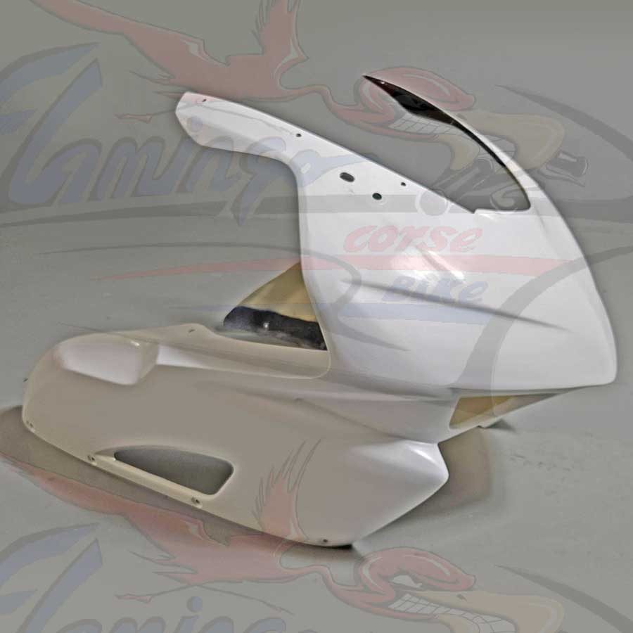 Uso pista e gare. La carenatura e' prodotta in tessuto doppio strato ed e' rinforzata in carbonio nei punti piu' sollecitati e nei fori di fissaggio.