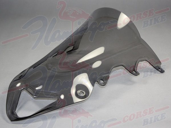 Plexiglas doppia bombatura fumè chiaro, tagliato al laser e già forato. Studiato per le carenature stradali. N.B. NON MONTA NELLE CARENE RACING DI NOSTRA PRODUZIONE.