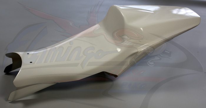 Set di carenature complete racing. Dettaglio: parte superiore, puntale, coperchio serbatoio, codone con sottocodone integrato, supporto codone.