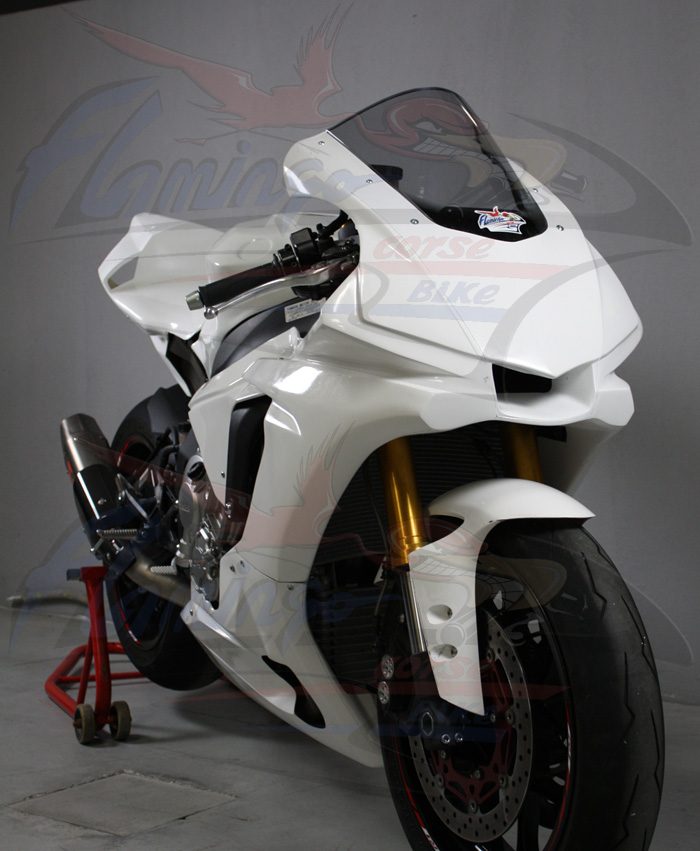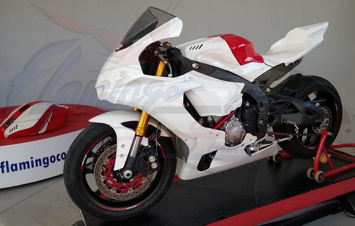 Prodotta dalla Flamingo Corse Bike per chi desidera una carena di altissimo livello e di estrema facilità di montaggio. Questa nuova linea ricambi viene prodotta con tessuto doppio strato ed è rinforzata in carbonio nei punti di maggiore sollecitazione quali: alloggio viti, ganci e, in genere, tutti i punti di maggiore carico.