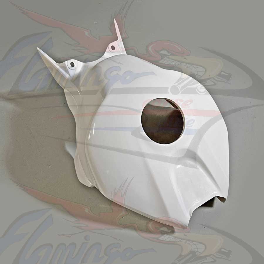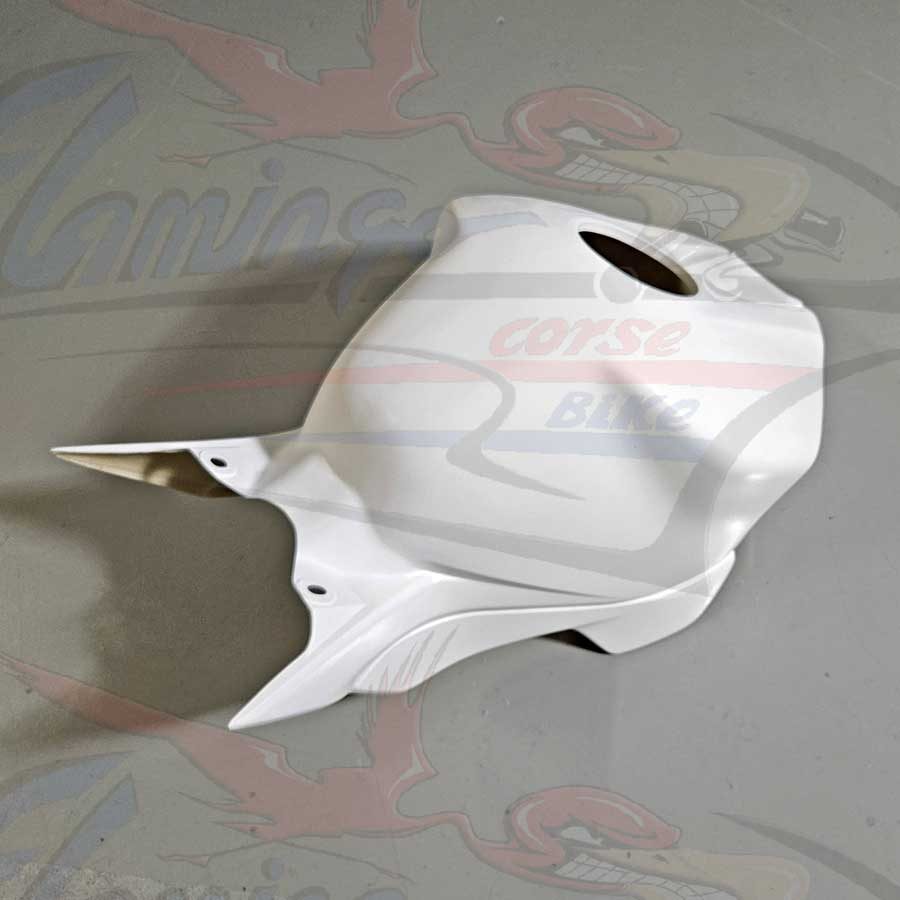 Il copriserbatoio e' prodotto in tessuto doppio strato ed e' rinforzato in carbonio nei punti piu' sollecitati e nei fori di fissaggio. Monta perfettamente come l' originale ed e' gia' forato.