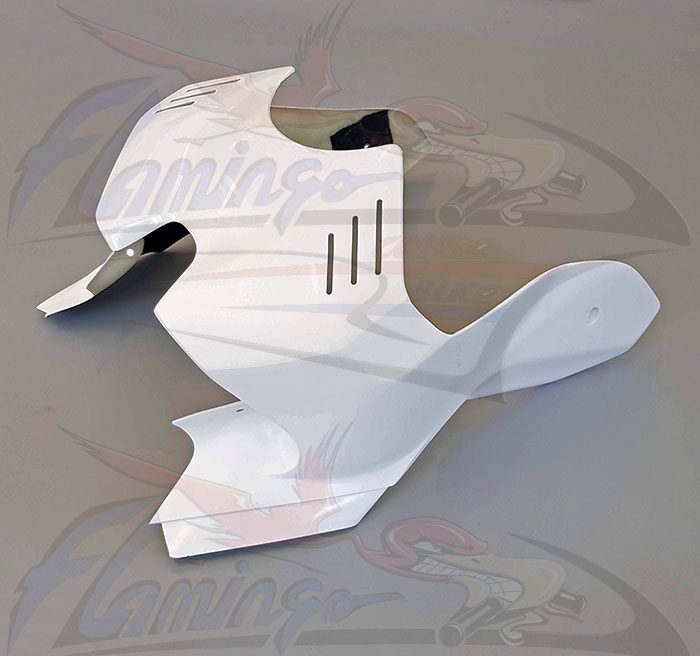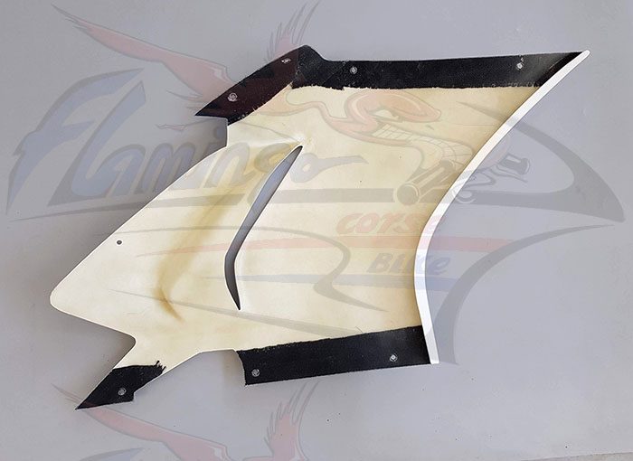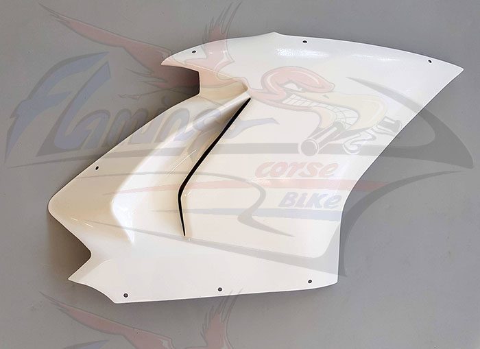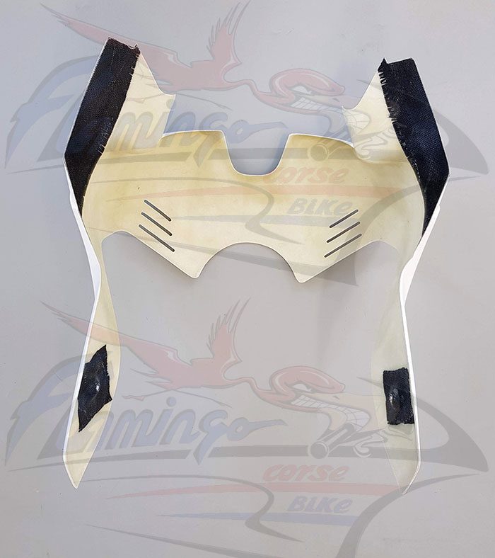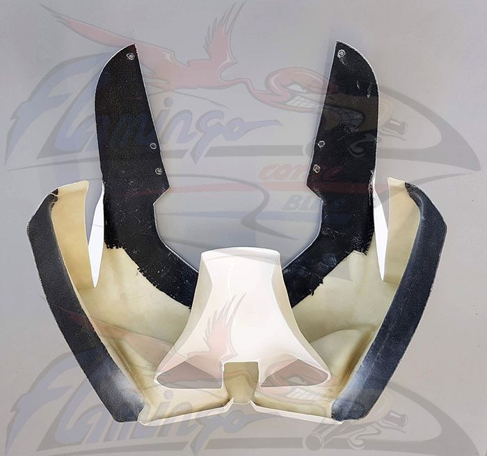 Prodotta dalla Flamingo Corse Bike per chi desidera una carena di altissimo livello e di estrema facilità di montaggio. Questa nuova linea ricambi viene prodotta con tessuto doppio strato ed è rinforzata in carbonio nei punti di maggiore sollecitazione quali: alloggio viti, ganci e, in genere, tutti i punti di maggiore carico.