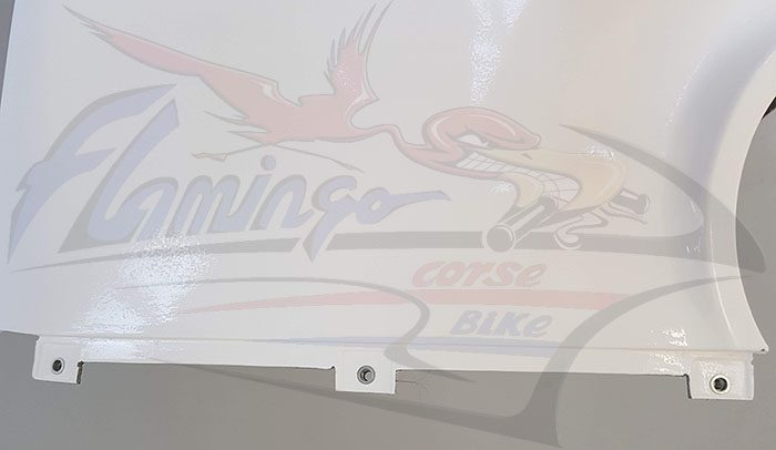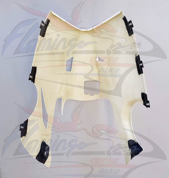 Prodotta dalla Flamingo Corse Bike per chi desidera una carena di altissimo livello e di estrema facilità di montaggio. Questa nuova linea ricambi viene prodotta con tessuto doppio strato ed è rinforzata in carbonio nei punti di maggiore sollecitazione quali: alloggio viti, ganci e, in genere, tutti i punti di maggiore carico.