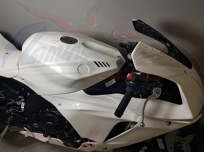 Coperchio serbatoio integrale SBK allungato per migliorare l'appoggio in frenata e la guidabilità.