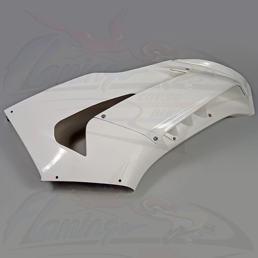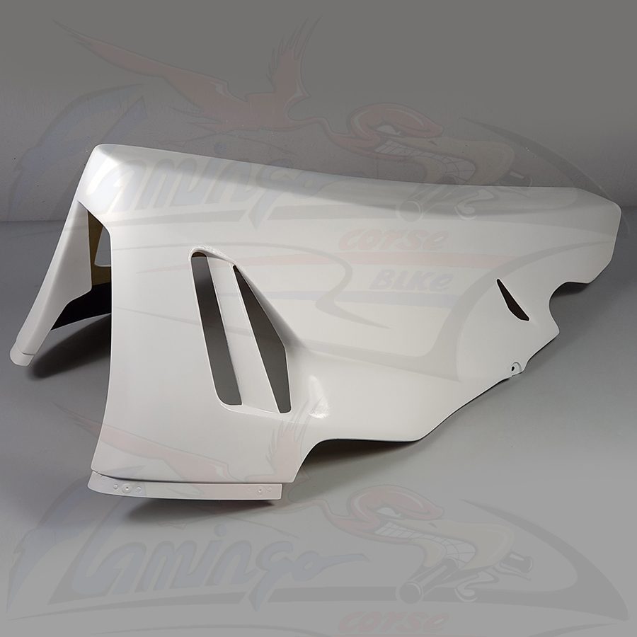 Prodotta dalla Flamingo Corse Bike per chi desidera una carena di altissimo livello e di estrema facilità di montaggio. Questa nuova linea ricambi viene prodotta con tessuto doppio strato ed è rinforzata in carbonio nei punti di maggiore sollecitazione quali: alloggio viti, ganci e, in genere, tutti i punti di maggiore carico.