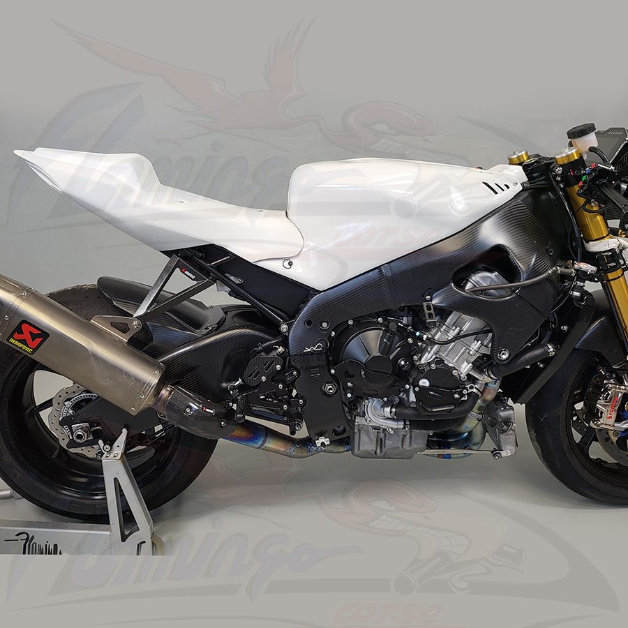 Comprensivo di: Cupolino, Fiancata Dx con deflettori, Fiancata Sx con deflettori, Puntale raccoglitore olio, codone monoposto per sella racing con sottocodone incorporato, Supporto codone, Coperchio serbatoio SBK allungato, staffa destra, staffa sinistra, staffa puntale, 3 ricettacoli, 3 ganci rapidi, 6 rivetti.