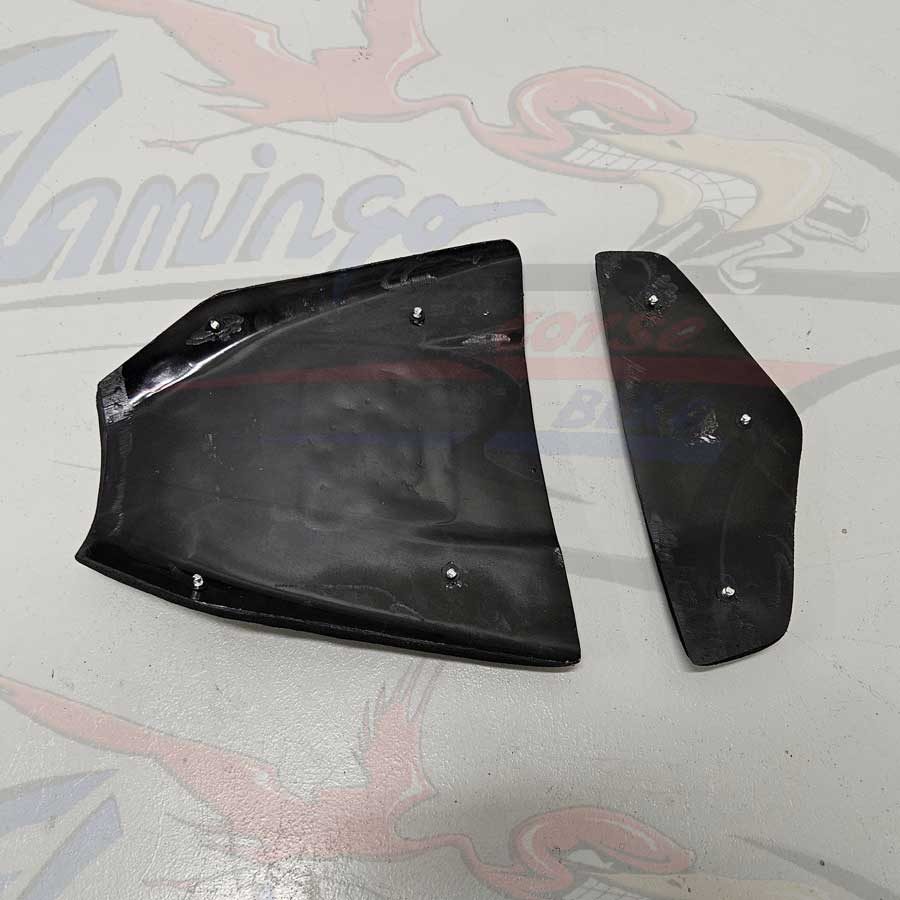 Prodotte in tessuto doppio strato con rinforzi in carbonio/Kevlar nei punti di maggiore sollecitazione, la finitura è in gelcoat nero grezzo ma non verniciata.