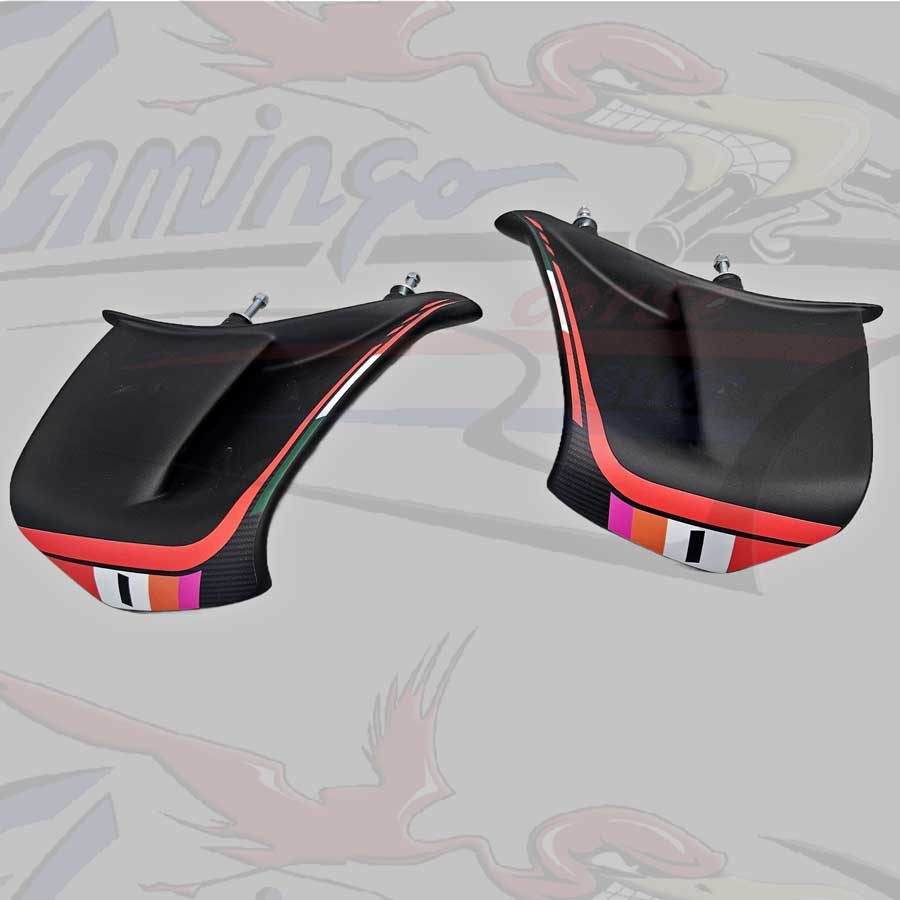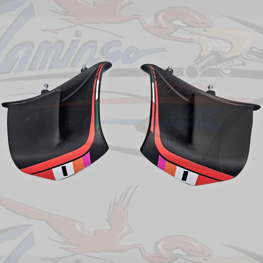 Coppia di appendici aerodinamiche compatibili con carene originali o di nostra produzione. Mantengono gli stessi attacchi e accoppiamenti delle appendici di serie, garantendo un’installazione precisa e senza modifiche.