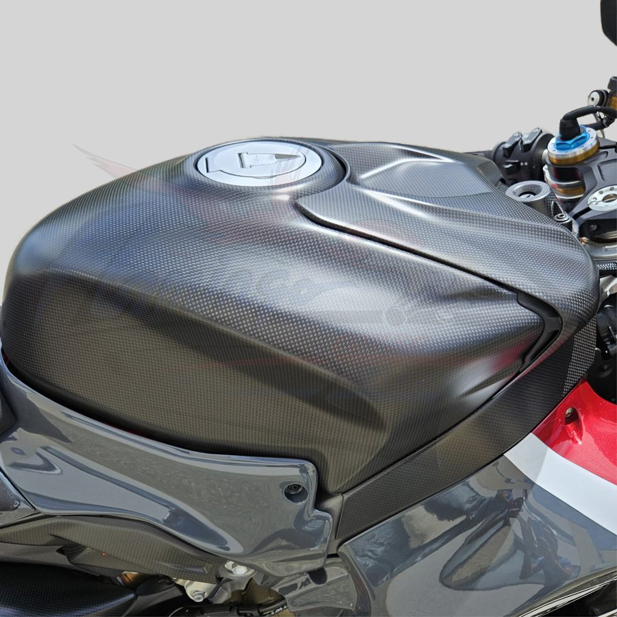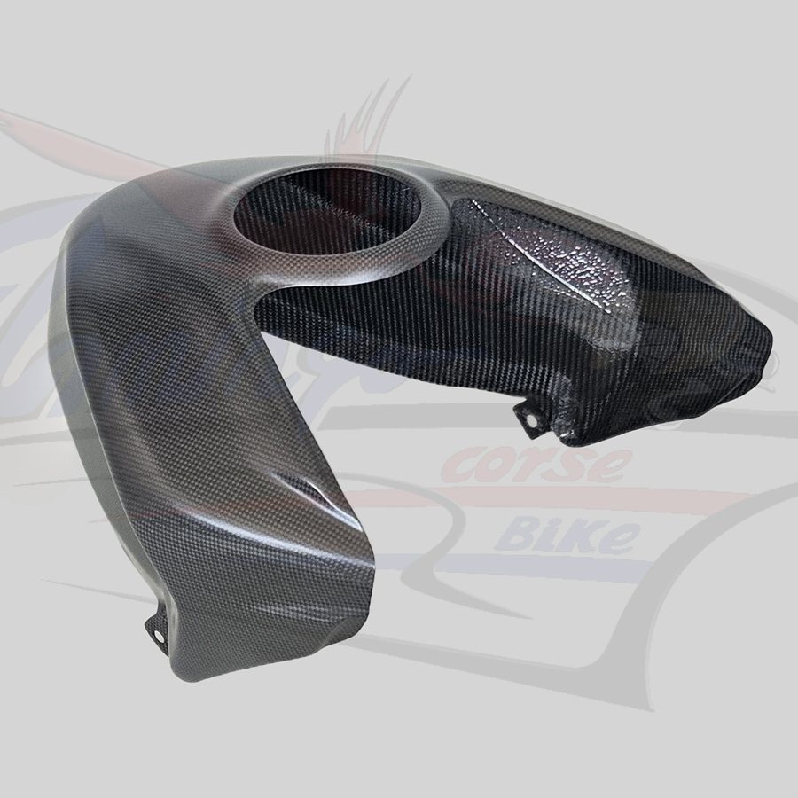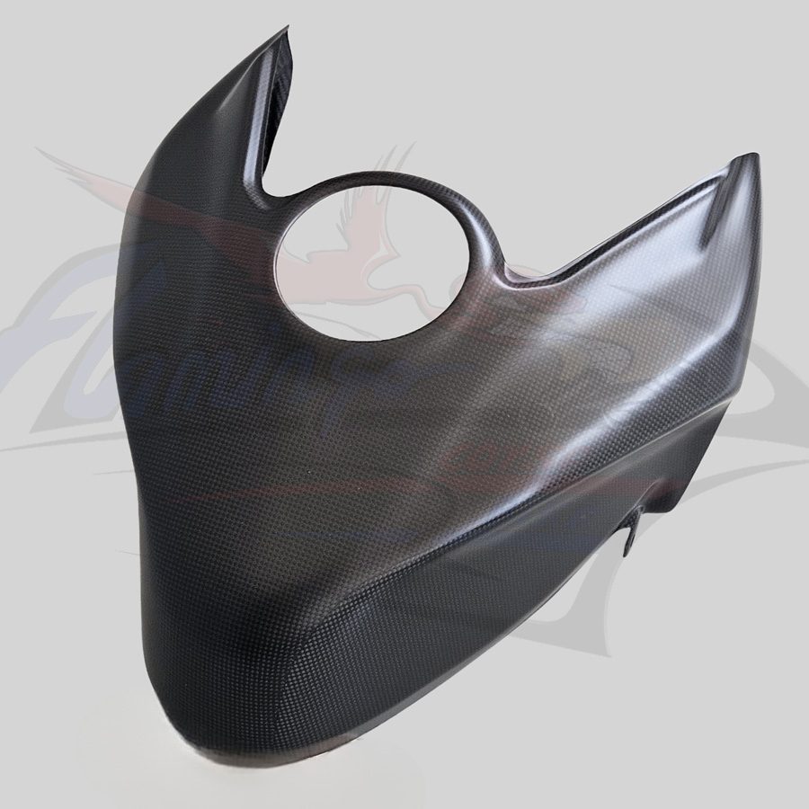 Realizzato interamente in fibra di carbonio preimpregnato, un materiale di alta qualità che offre un perfetto equilibrio tra leggerezza e resistenza meccanica. Il processo di produzione in autoclave garantisce una struttura solida e uniforme, migliorando la resistenza agli urti e prevenendo deformazioni. Questo procedimento assicura superfici impeccabili, prive di bolle d'aria o imperfezioni. La finitura opaca con trasparente non solo valorizza l'estetica del carbonio, ma protegge anche dai raggi UV e dagli agenti atmosferici. Inoltre, la trama del carbonio utilizzata garantisce una compatibilità perfetta con il carbonio originale, eliminando qualsiasi rischio di discrepanze estetiche.