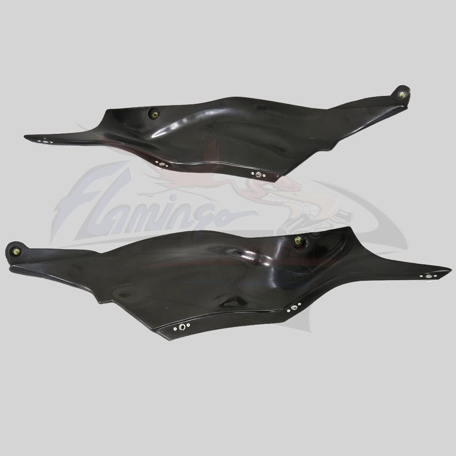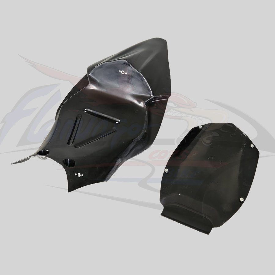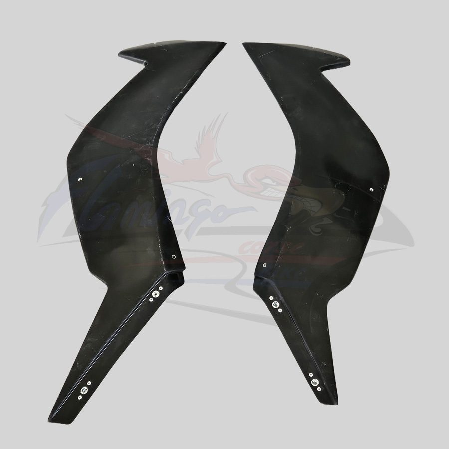 Prodotte in tessuto doppio strato con rinforzi in carbonio/Kevlar nei punti di maggiore sollecitazione, la finitura è in gelcoat nero grezzo ma non verniciata.