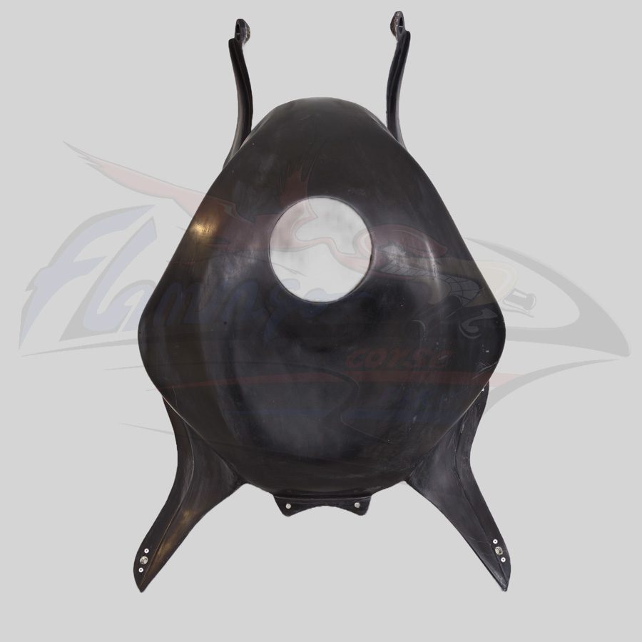 Prodotto in tessuto doppio strato con rinforzi in carbonio/Kevlar nei punti di maggiore sollecitazione, la finitura è in gelcoat nero grezzo ma non verniciata.