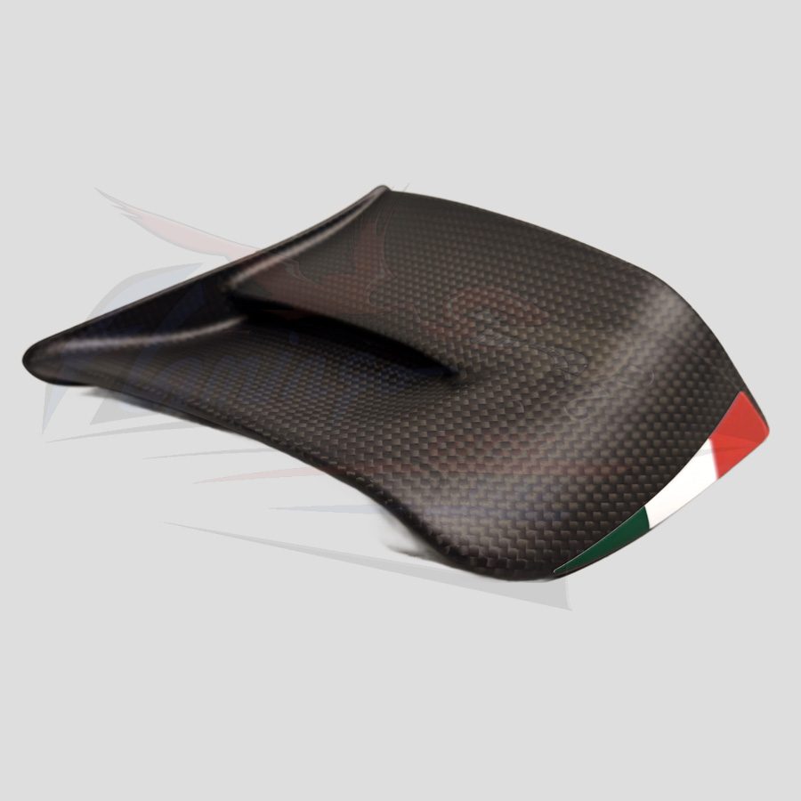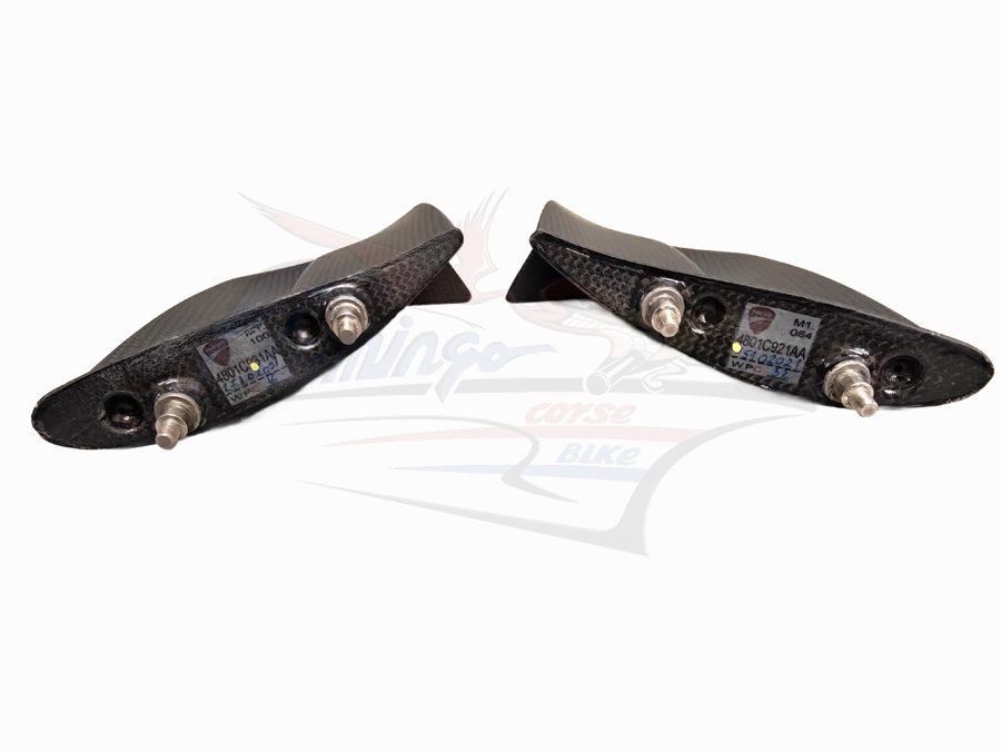 Coppia di ali in carbonio originali Ducati, complete di bandierine tricolore sotto trasparente opaco.