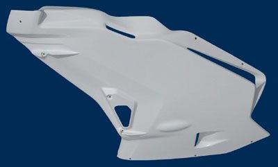 La carenatura e' prodotta in tessuto doppio strato ed e' rinforzata in carbonio nei punti piu' sollecitati e nei fori di fissaggio.