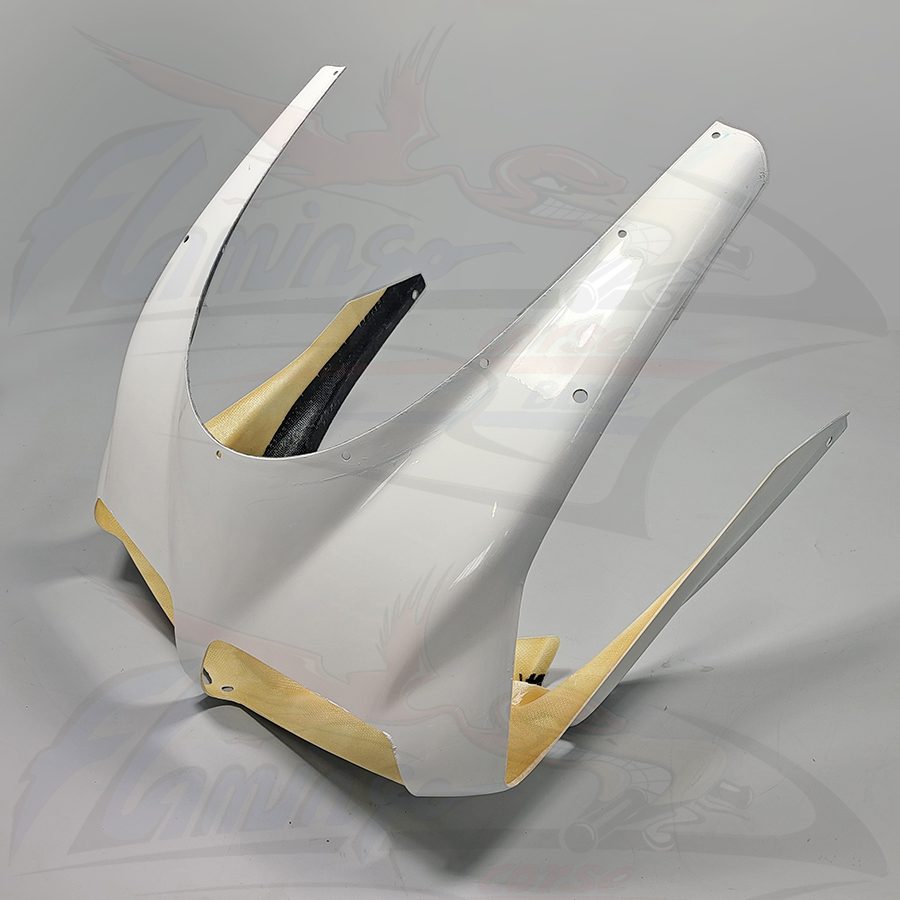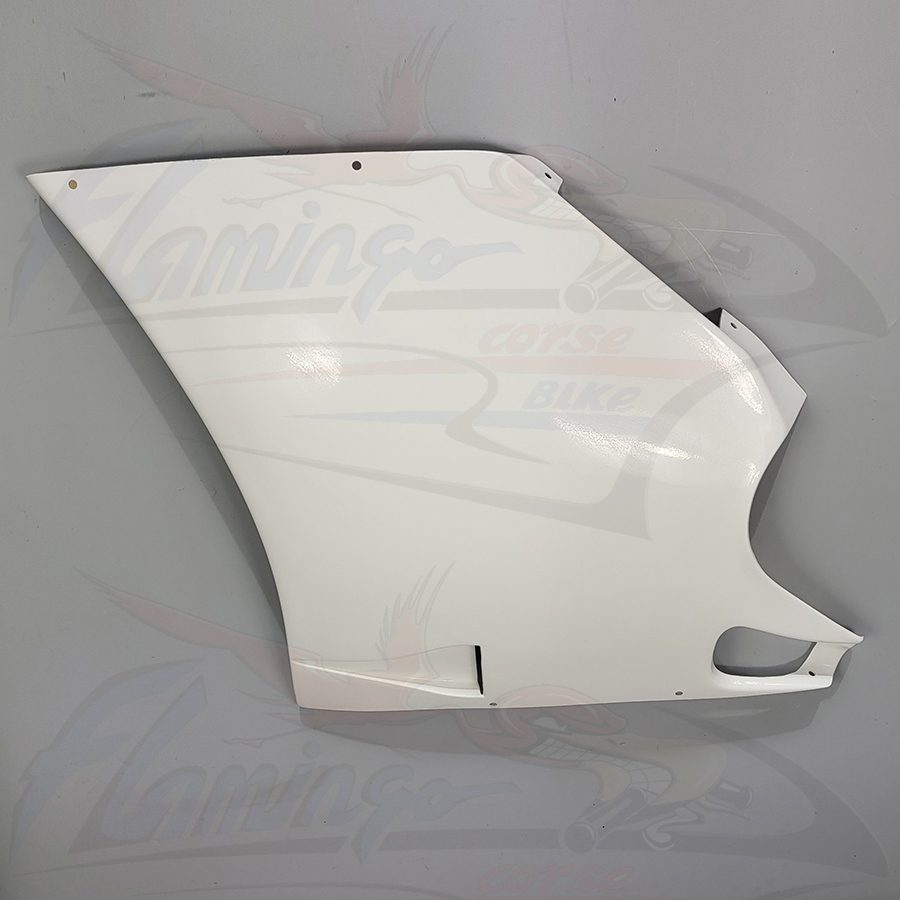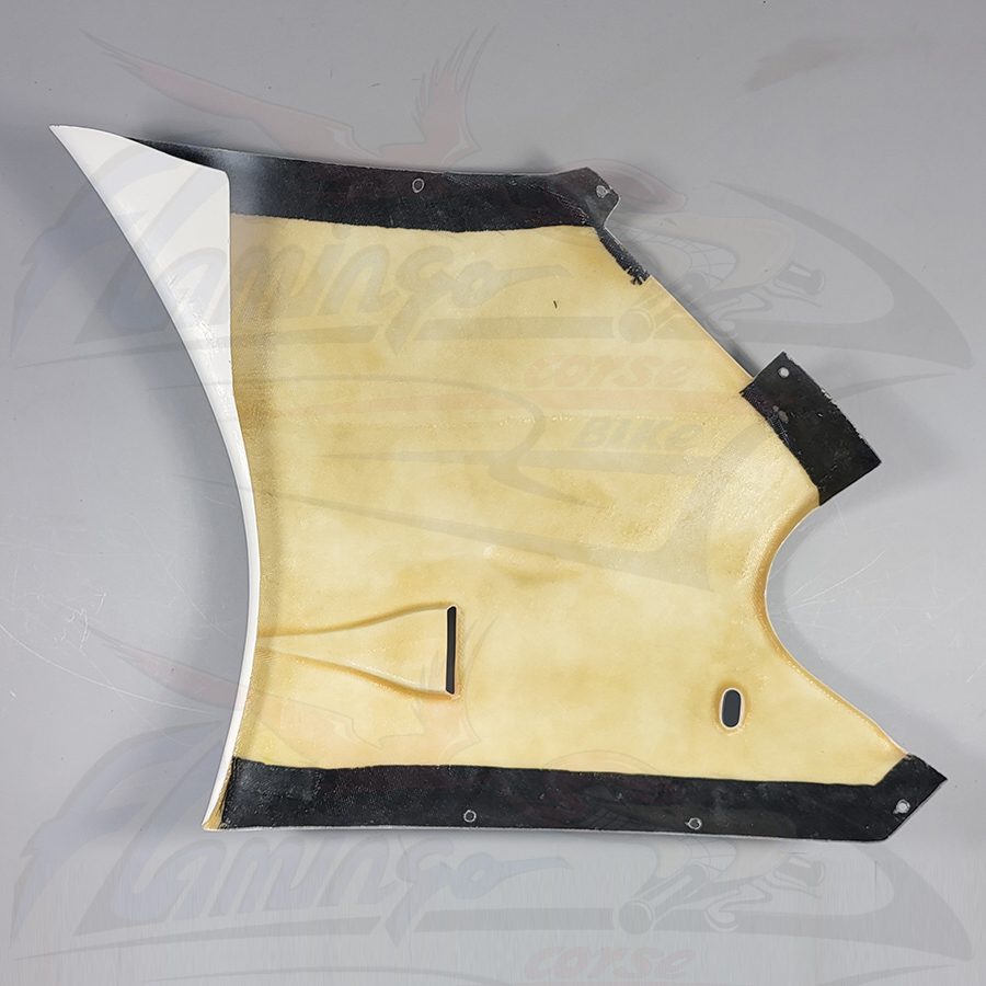 La carenatura è prodotta in tessuto doppio strato ed è rinforzata in carbonio nei punti più sollecitati e nei fori di fissaggio.