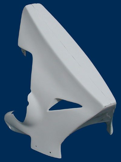 La carenatura e' composta in due pezzi: - superiore - inferiore (vasca racc. olio) La versione in vetroresina pur mantenendo la solita qualita' costruttiva del modello in tessuto e carbonio rimane interamente da forare.