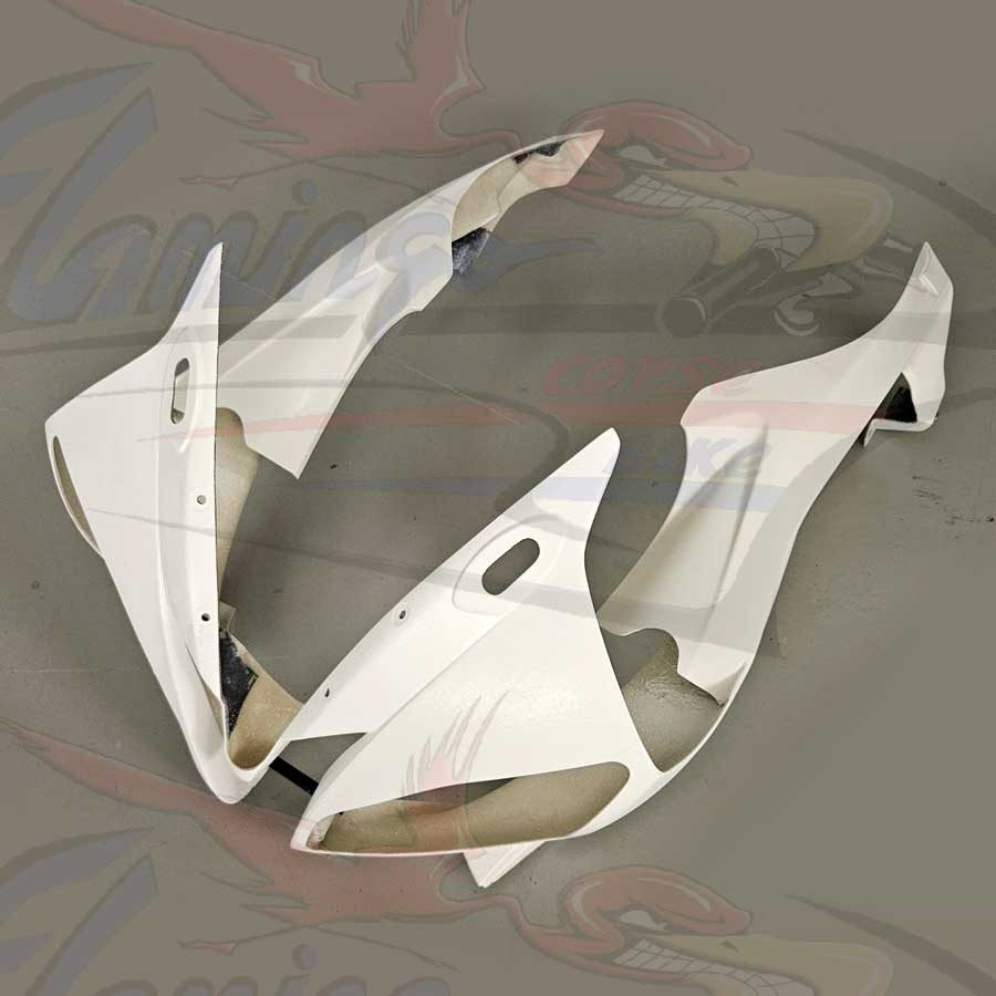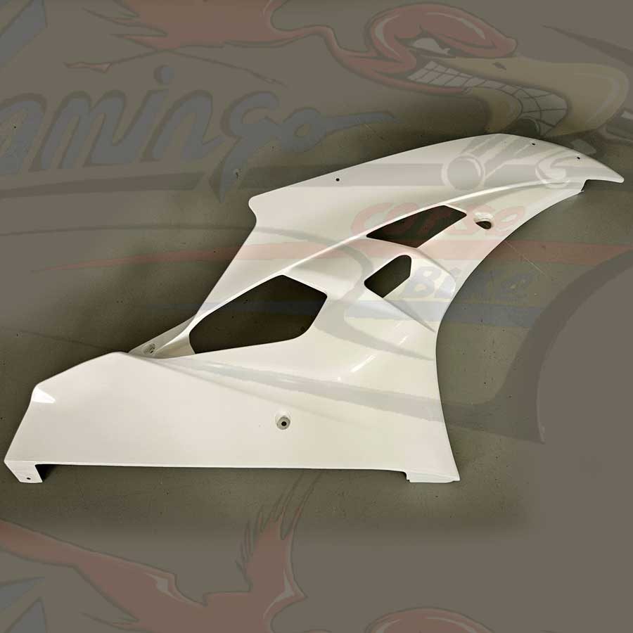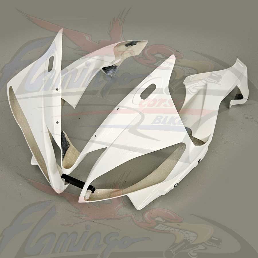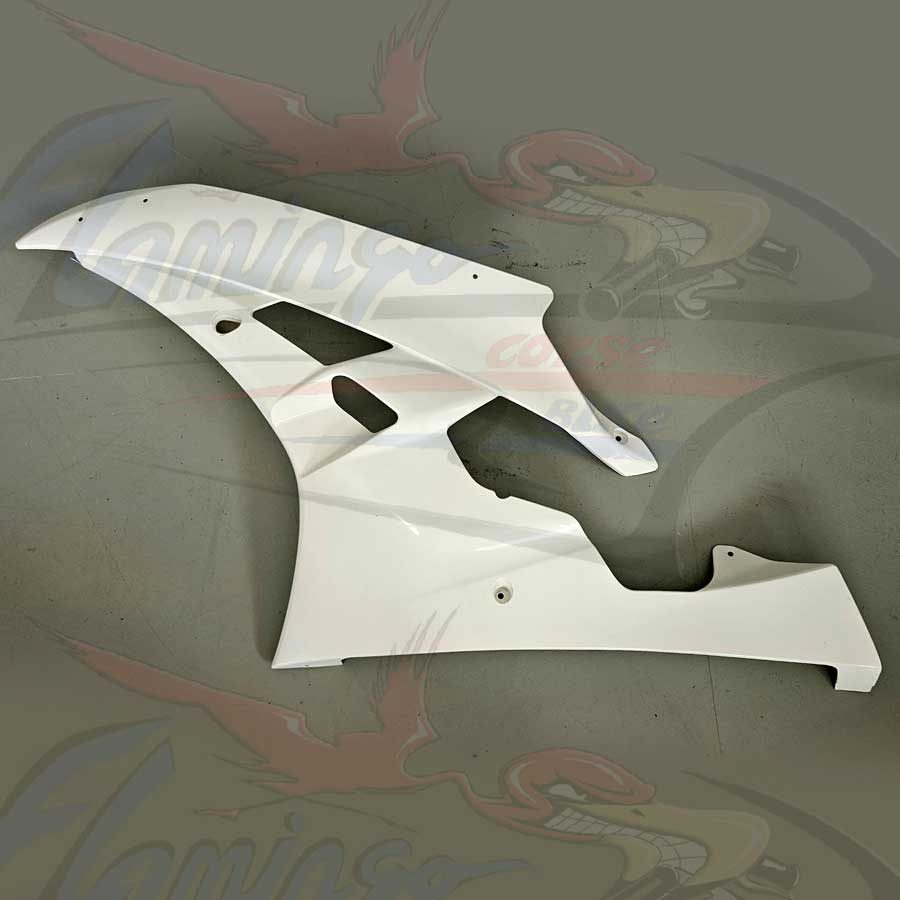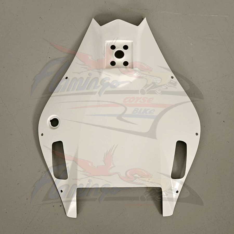 Prodotto dalla Flamingo Corse Bike per chi desidera un prodotto di altissimo livello e di una estrema facilità di montaggio, questa nuova linea ricambi viene prodotta con nuovo sistema tramite laminazione a freddo, utilizzando finissima fibra di vetro e una doppia stratificazione di Twill, la resina e di tipo sintetizzata il tutto realizzato su nostre specifiche richieste, il pezzo viene ulteriormente rinforzato con strati di carbonio nei punti di maggiore sollecitazione quali: alloggio viti, ganci e in genere tutti i punti di maggiore carico, la finitura è realizzata con un particolare gelcoat bianco anche questo con una composizione a noi dedicata per ottenere una base verniciabile di alto pregio.