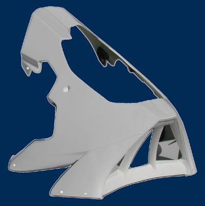 La carenatura e' composta in due pezzi: - superiore - puntale alloggiamento cavalletto La versione in vetroresina pur mantenendo la solita qualita' costruttiva del modello in tessuto e carbonio rimane interamente da forare.