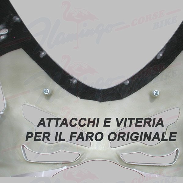 E' interamente forata ed è comprensiva di filettatura e viteria per il montaggio del fanale originale, montano i coperchi airbox, plexiglas e specchietti originali.